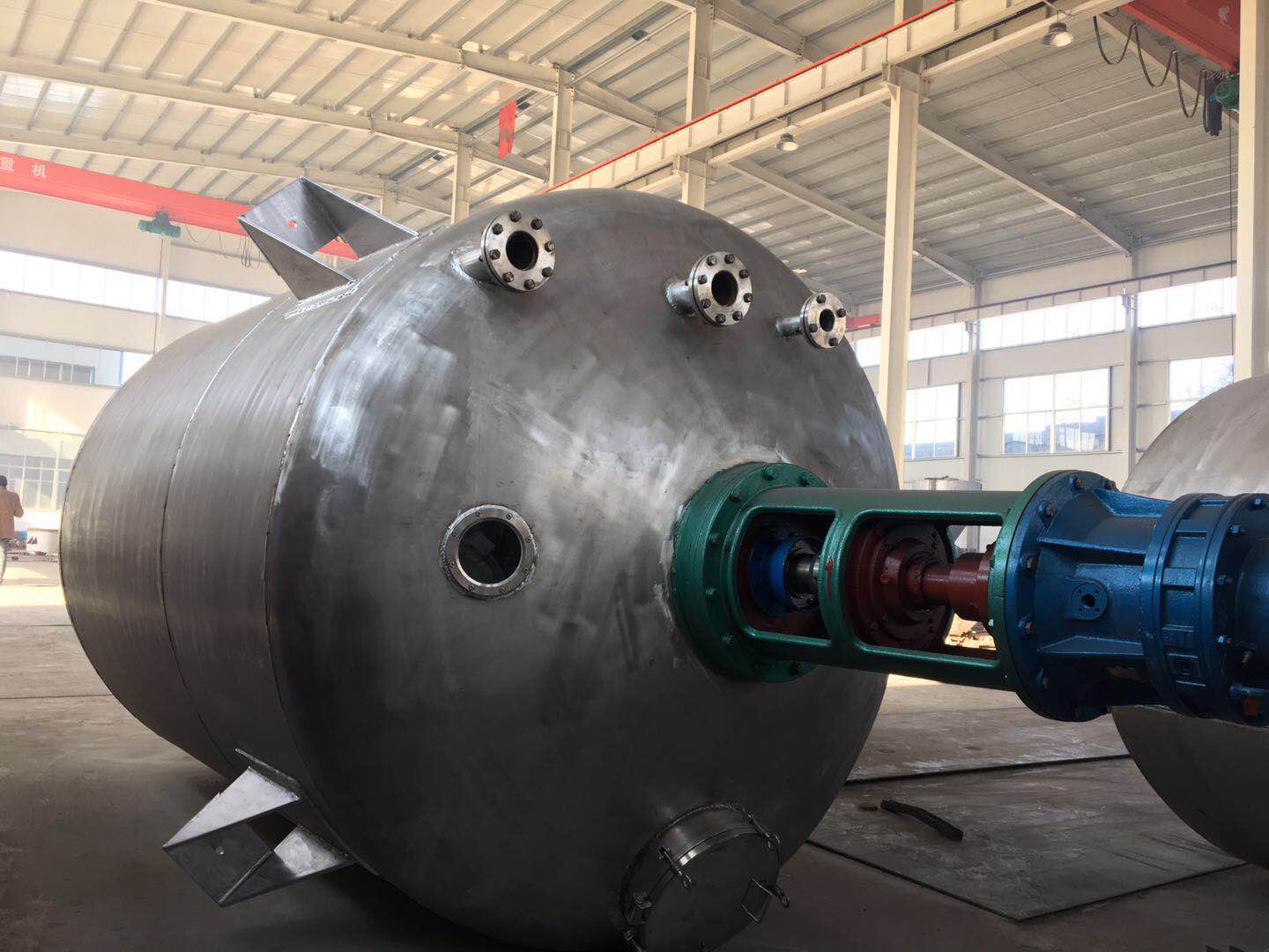反應釜材質一般有碳錳鋼、不銹鋼、鋯、鎳基(哈氏、蒙乃爾)合金及其它復合材料。反應釜可采用SUS304、SUS316L等不銹鋼材料制造。攪拌器有錨式、框式、槳式、渦輪式,刮板式,組合式,轉動機構可采用擺線針輪減速機、無級變速減速機或變頻調速等,可滿足各種物料的特殊反應要求。密封裝置可采用機械密封、填料密封等密封結構。加熱、冷卻可采用夾套、半管、盤管、米勒板等結構,加熱方式有:蒸汽、電加熱、導熱油,以滿足耐酸、耐高溫、耐磨損、抗腐蝕等不同工作環境的工藝需要。而且可根據用戶工藝要求進行設計、制造。